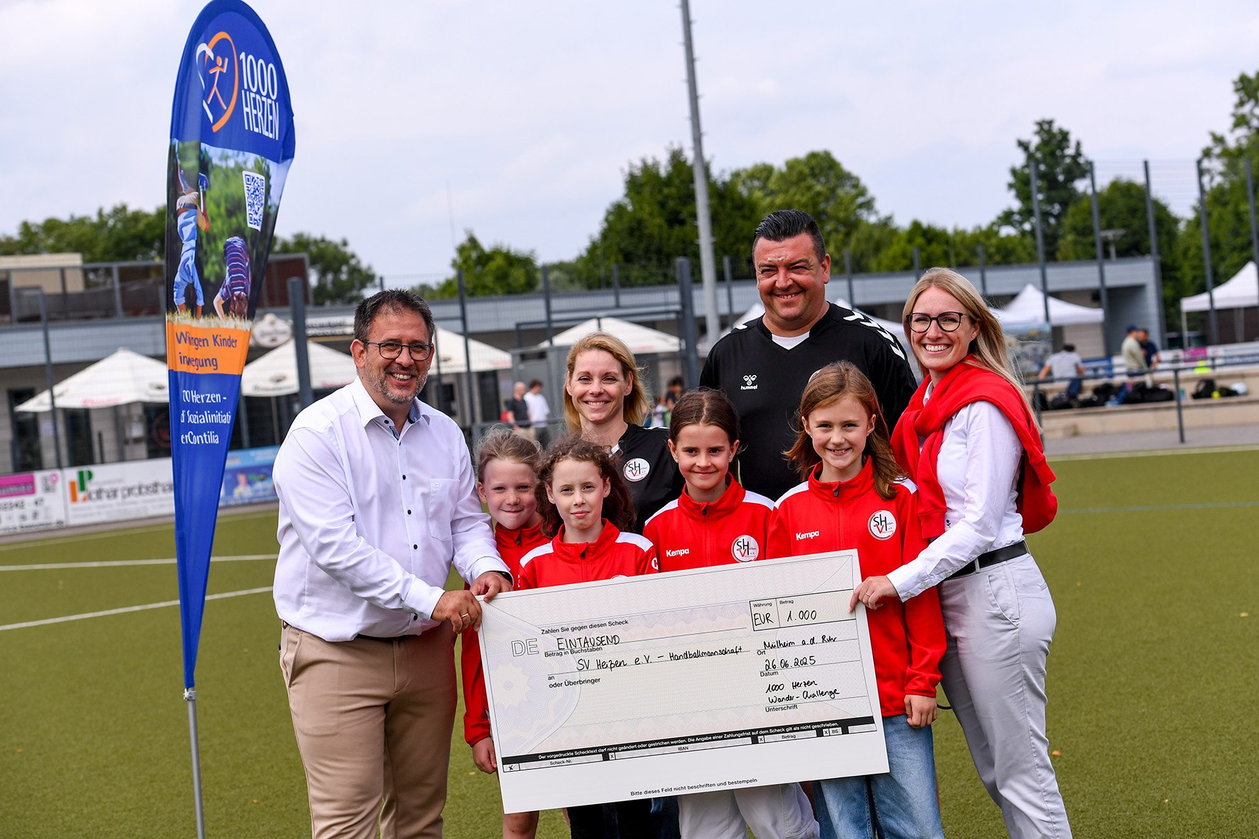 Der TV Dümpten 1885 hat von der 1000 Herzen Wander-Challenge des St. Marien-Hospitals Mülheim an der Ruhr einen Scheck zum Aufbau von Mädchenfußballmannschaften erhalten. Insgesamt konnten das Charity-Projekt der SMH-Kardiologen Prof. Oliver Bruder, Prof. Wieneke und Dr. Schmitz fünf Mädchenmannschaften (U10, U13, U15) komplett mit neuen Trikots einkleiden und bei der Ausbildung von Trainer:innen unterstützen.