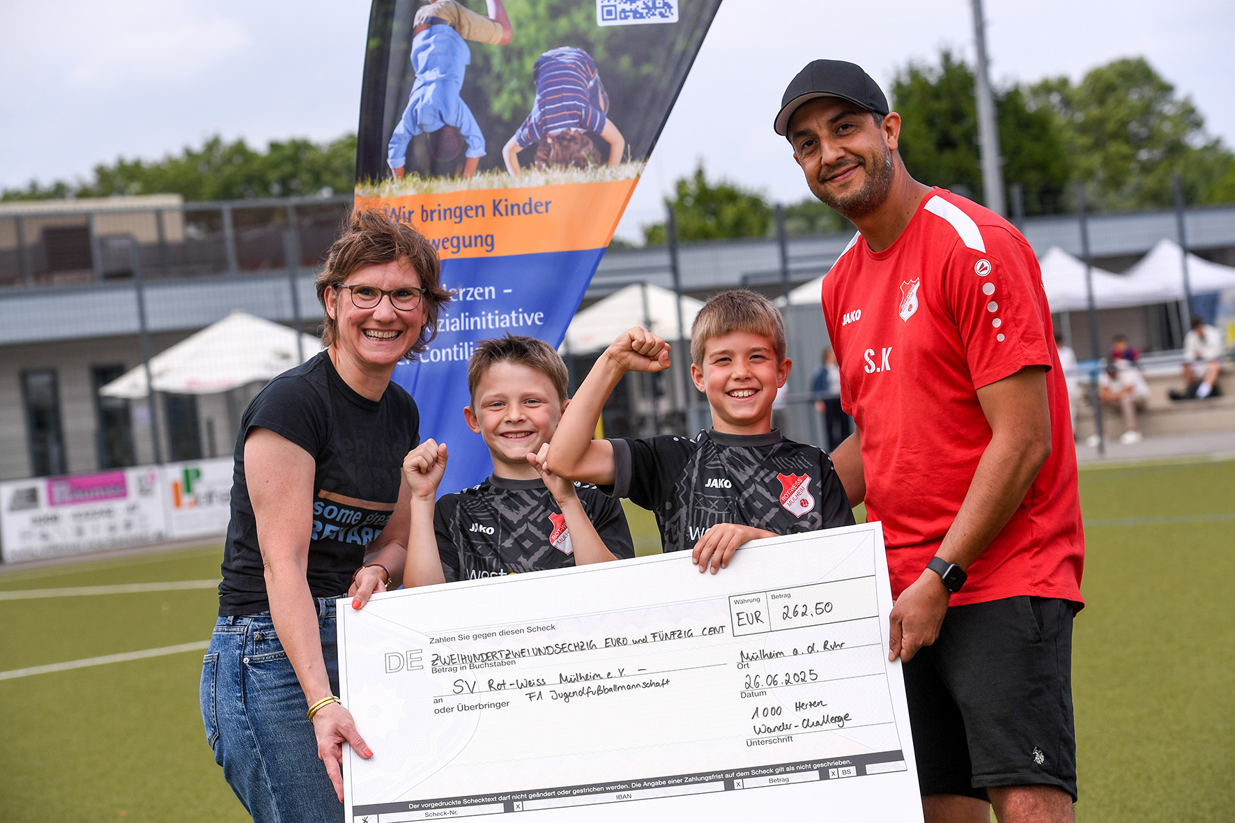 Der SV Rot-Weiß Mülheim e.V. hat seine F1-Jugendfußballmannschaft mit 15 neuen Fußbällen wieder ins Spiel gebracht. Die Fördersumme in diesem Jahr: 262,50 Euro.