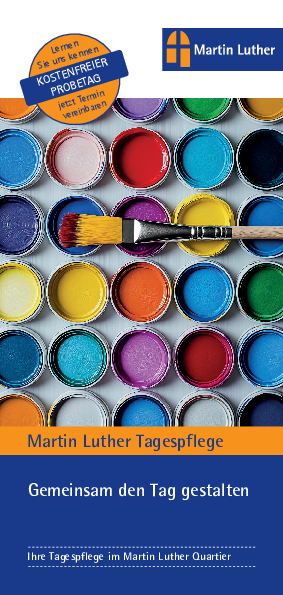 Die Martin Luther Tagespflege bietet 12 Senioren:innen eine qualifizierte Betreuung am Tage. Das gesellschaftliche Leben findet in hellen und modern eingerichteten Räumlichkeiten statt. Ein abwechslungsreiches Programm mit viel Musik und Bewegung sorgt für Unterhaltung. In familiärer Atmosphäre werden die Mahlzeiten des Tages gemeinsam eingenommen. Ruheräume hingegen geben den Tagespflegegästen die Gelegenheit zum Rückzug. Im Mittelpunkt der Angebote stehen das Wohlbefinden und die möglichst selbstbestimmte Lebensqualität der Gäste.
