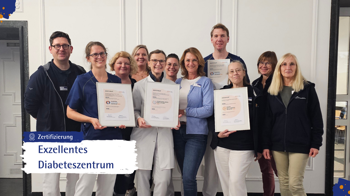 Das „Herzstück“ ist die Zertifizierung als „Diabetes Exzellenzzentrum“ der Deutschen Diabetes Gesellschaft (DDG). Zudem gab es auch die Auszeichnung „Klinik mit Diabetes im Blick“ und „Stationäre Behandlungseinrichtung für Patient:innen mit diabetischem Fußsyndrom“. Ebenfalls ausgestellt von der DDG.